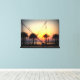 Sunset with palm trees and trampoline canvas print