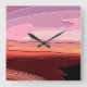 An abstract art design of sunset in pink, lilac, black, red and peach colours.