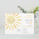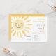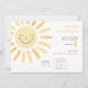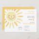 Make your child's birthday unforgettable with this modern sunshine theme invitation. The design features a watercolor illustration of a yellow sunshine, on a simple white background making it both fun and charming, while the phrase "First Trip around the Sun" adds a playful element to the card. Use the design tools to customise the text, fonts and colours! Also available as digital download for evites.
