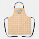 Cute apron with a happy yellow sunshine peeking out from a big blue cloud with a template below to add your name, quote, text or delete to leave blank. The background is a peach colour with a white grid pattern.