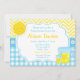Sunshine and Lemonade Blue and Yellow Baby Shower Invitation. The background has blue gingham and yellow chevron.