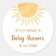 This Baby Shower sticker is decorated with a watercolor sun and stylish typography.