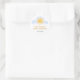 This sun-themed baby shower sticker features a cute yellow smiling sun, blue clouds.
