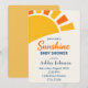 Celebrate your little sunshine with this modern baby shower invitation featuring a bold sun design in warm yellow and orange tones. Perfect for a gender neutral baby shower, this sunshine theme invitation combines clean typography with a cheerful, contemporary layout that prints beautifully for your special celebration.