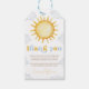 Add a finishing touch to your favors with these "Little Sunshine" tags. Small and sweet, featuring the watercolor sun and retro font to tie your gifts to the theme.