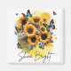 a vibrant and uplifting design featuring a stunning bouquet of sunflowers in full bloom, accompanied by a kaleidoscope of butterflies in shades of blue and orange. The background bursts with energy, blending rich yellows and warm oranges, evoking the warmth of the sun. Subtle leopard print accents add a modern, edgy twist, while grayscale flowers provide elegant contrast. The phrase "Shine Bright" at the bottom ties the design together, inspiring positivity and bold self-expression.
