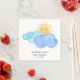 This cute boy's baby shower napkin is decorated with blue watercolor clouds and a yellow sun.