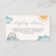 Elegant calligraphy display shower card featuring sunshine, clouds and watercolor rainbow design.