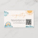 Elegant calligraphy QR code registry card featuring sunshine, clouds and watercolor rainbow design.