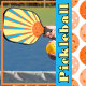 A colourful pickleball paddle with an orange pickleball ball as a sun with yellow sunbeams on a sky-blue background. Colourful pickleball gift pickleball paddle for your pickleball-loving mum, dad, uncle, aunt, brother, sister, neighbour, grandpa, grandma, husband, wife, friend, or work colleague who won't stop talking about pickleball.