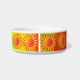 This is a heavy, durable bowl decorated with Tibbies of many colors, the perfect size for hungry/thirsty Tibs. The design is interesting and printing clear.