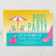 Abundant sunshine and a pink flamingo pool float? Yes, please! Get ready to dive in for some fun with this adorable pool party invitation. Bright summer colours and a retro vibe really make it pop. Picture yourself sipping a drink in a cabana chair, under a pink striped umbrella, while the kids splash around in the bright turquoise water. Bring on summer!