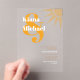 As part of our vibrant and captivating 'Sunshine Typography' wedding suite, this acrylic invitation design on a transparent background is designed to bring a touch of sunshine to your special day. With its bright and bold colours, large fonts, and eye-catching typography, this collection is perfect for couples who want to make a statement. Add your event details and customise colours easily using our design tool and provided template. Search ID1048 to see all the products in this wedding suite.