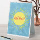 Sunshine watercolor template for baby shower. Custom table tent signs for party decor. Yellow sun in blue sky. Add text and image to customise. Theme: Here Comes The Son.
