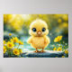 Sunshine yellow fluffy chicken blue - eyed bird poster