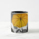 Sunshine's on its way, ray of sunshine peeking through an avalanche of umbrellas, custom-designed postcard.