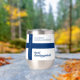 Celebrate Suomen Kansallispäivä, or the National Day of Finland, with this striking December 6th stainless steel stemless wine tumbler, which features the colours and iconic Nordic cross of Finland's national flag (siniristilippu). Reverse shows identical design.