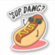 Sup Dawg Funny Hot Dog Pun features a cute looking cool in his sunglasses as