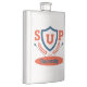 The product is a good size and came exactly as it was pictured. The lid is not attached to the flask, which could be dangerous on drunken nights... The print came out surprisingly well and looks very sharp. Would definitely recommend.