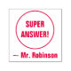 This encouraging rubber stamp design features the message "SUPER ANSWER!" and a customised educator name. It could be used by a school teacher, educator, instructor, or tutor when marking assignments, to acknowledge that the student has done a great job.