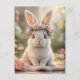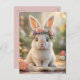 Super cute bunny with a flower wreath on its head. Vintage look, dreamy colors. Send your Easter greetings with this fluffy, cute bunny. Customizable text and color!