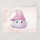 Step into the enchanting world of Halloween with our delightful Halloween postcard! Embrace the spirit of the season with its charming design featuring a super cute ghost in a pink witch's hat against a pretty blush and white watercolor background. This postcard captures the essence of Halloween fun with its whimsical design.