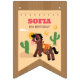 The adorable horse and bright, engaging design are sure to get the kids excited for the party. The horse is set against a fun, Western-themed backdrop with cacti and a bright sun. A super cute horse illustration that kids will absolutely love!