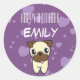 Super Cute Pug Purple Heart Design Classic Round Sticker