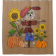Shower Curtain bathroom amenity and home furnishing decor accessory printed with Super Cute Scarecrow artwork design illustration by TheFabricSeal at Zazzle.com. Fall Season, Thanksgiving and Halloween are all great times of the year. This adorable whimsical drawing with a super cute scarecrow with a silly grin, pumpkins and sunflowers was a lot of fun to create. The scarecrow has a wonky orangish red baseball hat, brown sweater, blue pants, straw hair, hands, feet and body. Gorgeous yellow sunflowers with their delicious sunflower seeds growing on tall flower plant green vines and leaves plus several yummy looking orange pumpkins complete this fun and whimsical farm scene.