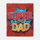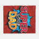 Super Dad Moustache Modern Grunge Fleece Blanket features the text "Super Dad" in modern red and yellow typography on a blue and red grunge background accented with a moustache. Gifts for Dad for birthday, Father's Day, Christmas, holidays and more. Created by Evco Studio www.zazzle.com/store/evcostudio