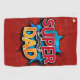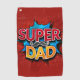 Super Dad Moustache Modern Grunge Golf Towels features the text "Super Dad" in modern red and yellow typography on a blue and red grunge background accented with a moustache. Gifts for Dad for birthday, Father's Day, Christmas, holidays and more. Created by Evco Studio www.zazzle.com/store/evcostudio