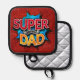 Super Dad Moustache Modern Grunge Oven Mitts & Pot Holders features the text "Super Dad" in modern red and yellow typography on a blue and red grunge background accented with a moustache. Gifts for Dad for birthday, Father's Day, Christmas, holidays and more. Created by Evco Studio www.zazzle.com/store/evcostudio