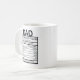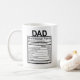 This design is like the nutritional label on products, but this one has some really cute percentages for dad such as caring, and a lot of positive words for our fathers. Makes a great gift for Christmas, Birthdays, or any event you want to impress dad. He will love drinking from this mug, knowing how much you love him. It also has Super Dad on the front.