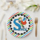 The super hero boy turning three years old will love this colourful, fun super hero boy design paper plate as an addition to his birthday celebration! Features a super hero in green with a green mask and red cape, bright blue text that reads 3 is Super, and a border with a decorative black ring and stripes of red, white, blue, and bright green!