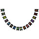 Super Hero insignia spell out "Merry Christmas" very colourfully. Tour each letter individually to appreciate fully.