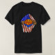 I give wanted to give this a 4 instead of a 5 because these Basic DARK T0shirts run unexpectedly SLIM or Narrow. Which is great if you do not have a potbelly, but I have a paunch. It isn't the shirt's fault that I've got a beer belly. The design and shirt itself is a quality cotton shirt. The color is more of a deep purple, but still a very pretty color. The Basic DARK T-shirts run a bit SLIMMER than the Basic Ts. The neck is a fraction narrower (or seems to be narrower) also. I'm a paunchy middle-aged woman and my neck is 12 inches (31cm) thick and the neckline fell about the same as in the photo of the man, and I had the desire to tug it a bit. So if you're a thick necked man or like loose shirts, be aware these are slimmer shirts. Once I get rid of my lockdown paunch it'll look great. The shirt washed well in cold water with no apparent bleeding. We don't have a dryer, so it hung dry. Did not shrink. Love the colors and the design. The design looks smaller on my shirt than it does on the model on-line. But still, it looks good on the shirt. The printing looks as it does on the model, just the size seems fractionally smaller. Washed garment in cold water, hung dry and design appeared unaffected.