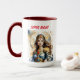 On the front of this remarkable mug, the phrase "Super Mum" celebrating the heroic nature of mothers everywhere. Her gold crown, adorned with a radiant red jewel heart and matching earrings, adds a touch of elegance and royalty to the design.