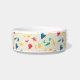 This is a heavy, durable bowl decorated with Tibbies of many colors, the perfect size for hungry/thirsty Tibs. The design is interesting and printing clear.