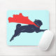 Super Pug mouse pad. A minimalist vector design featuring a super pug flying with a cute red cape. A great gift for fans of pugs, dogs, super hero canines and vector art.