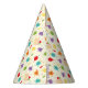 Top off the celebration with this playful Super Simple Songs birthday party hat! Covered in a lively pattern of adorable characters in blue, orange, purple, and teal, this hat is full of fun and festive flair. Brightly coloured balloons, birthday candles, confetti, and slices of cake with strawberries dance across a cream background, making it the perfect accessory for kids' birthday parties. Whether for party photos or party fun, this cheerful design adds a spirited touch to any celebration.