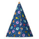 Blast off into birthday fun with this Super Simple Bumble Nums space party hat! Featuring the adorable Bumble Nums dressed as colourful astronauts floating among planets, stars, rockets, and space treats, this vibrant design pops against a deep navy blue background. With bright character colours and a whimsical outer space theme, this hat is perfect for little explorers and fans of Super Simple Songs. Ideal for space-themed birthdays, classroom parties, or preschool celebrations.
