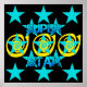 Super Star Teal Yellow Swirls Stars Pattern Poster