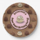 Super sweet chocolate themed birthday design is perfect for chocolate making themed parties! Design features a chocolate brown background. There is a pattern of sweet and yummy looking chocolates. The pieces of chocolate are milk chocolate with dark swirls, milk chocolate with chopped nuts and white chocolate with dark swirls. In the centre is a pink circle with dark brown trim. In the middle of the circle is a larger piece of the white chocolate and text in brown font that curves around the circle. You can customise by adding the birthday guest of honour's name! Matching invitations, napkins and postage also available!