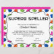 Celebrate your students' spelling achievements with the "End of Year Superb Speller Student Recognition Award." This beautifully designed certificate is perfect for acknowledging hard work and excellence in spelling. Personalise it with the student's name and date to create a memorable keepsake. Ideal for teachers and educators who want to inspire and reward their superb spellers!