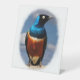 Superb starling seen from front pedestal sign