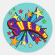 SuperDad! with Stars and Cartoon Design Classic Round Sticker