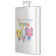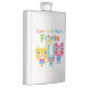 The product is a good size and came exactly as it was pictured. The lid is not attached to the flask, which could be dangerous on drunken nights... The print came out surprisingly well and looks very sharp. Would definitely recommend.