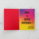 This card is great fun and good quality. I loved the humour inside and on the back. There is the opportunity to change the orientation of this card from landscape to portrait, which I did. It is relatively straightforward to amend the typeface to fit the new orientation. It was well packaged with no plastic. The printing on this card is excellent.