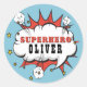 Superhero Comic Speech Cloud Kids Classic Round Sticker. Add your name. Fun sticker for boys.