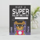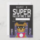 Cute valentine's day card for your child to give out at school in their classroom to friends. It's an illustration of a dog in a superhero outfit. There is city skyline in the back. The text above says "Have a SUPER valentine's day." You can add your child's name on the card and there is a blank space on the card where you can fill out the recipient's name.